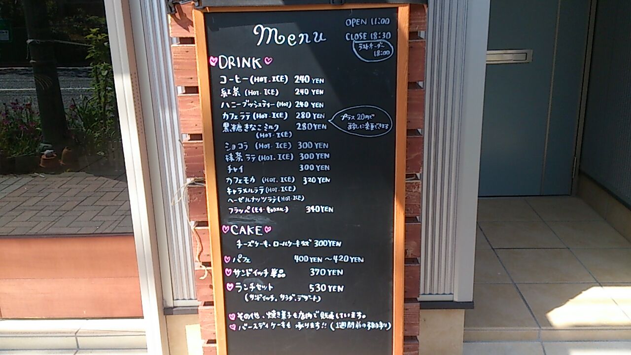 お店の前に、ランチとドリンクなどのメニューが出ています。