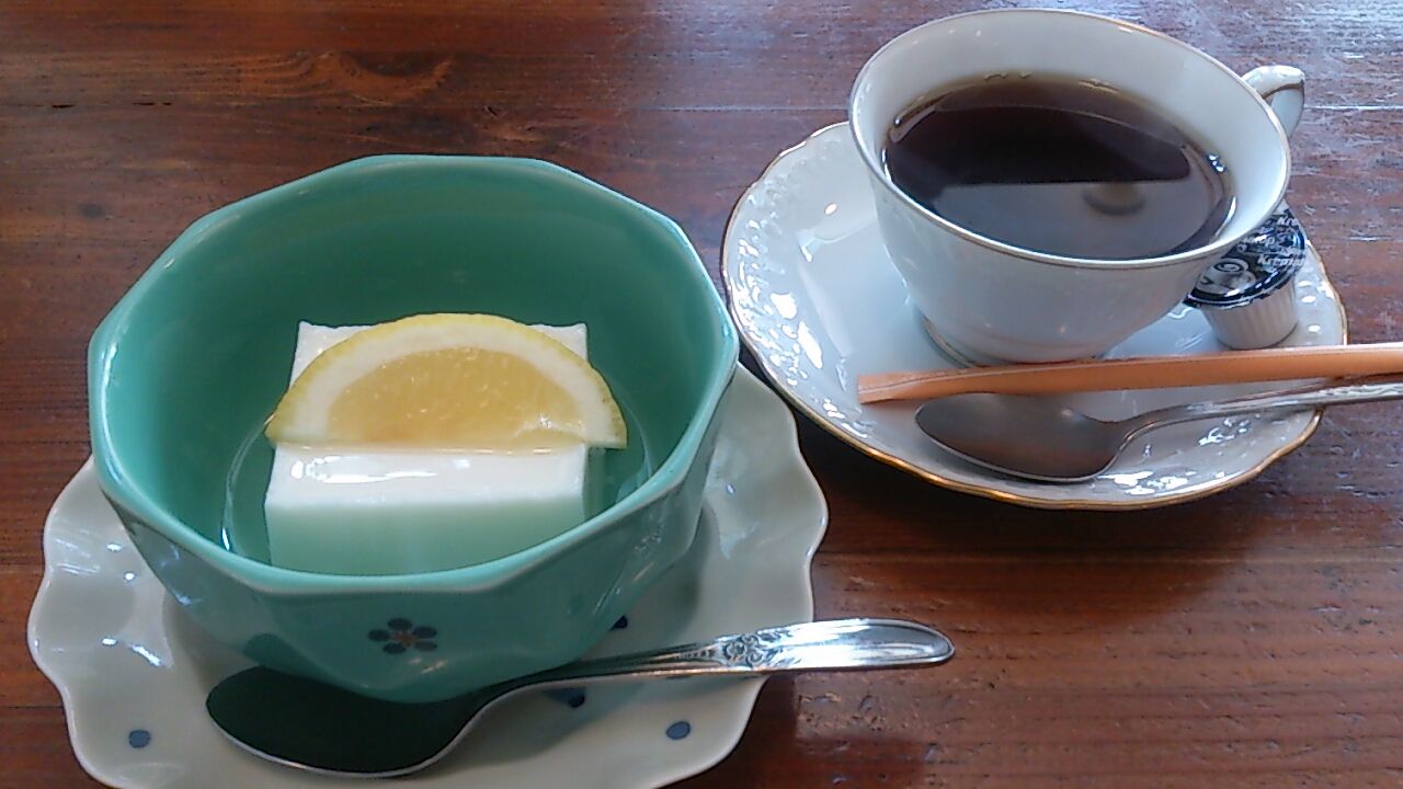 牛乳かんの上には、レモンがのっていて、絞っていただきます!