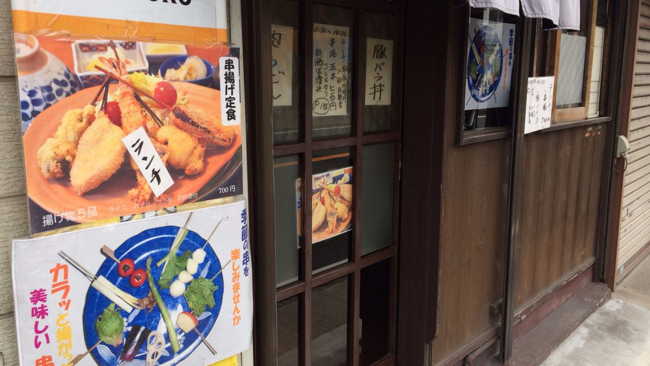 ランチは、串揚げ定食 と 豚バラ丼 の2種類になります。