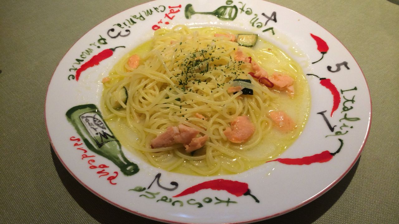B. サーモンと旬ズッキーニの ペペロンチーノ 1,350円