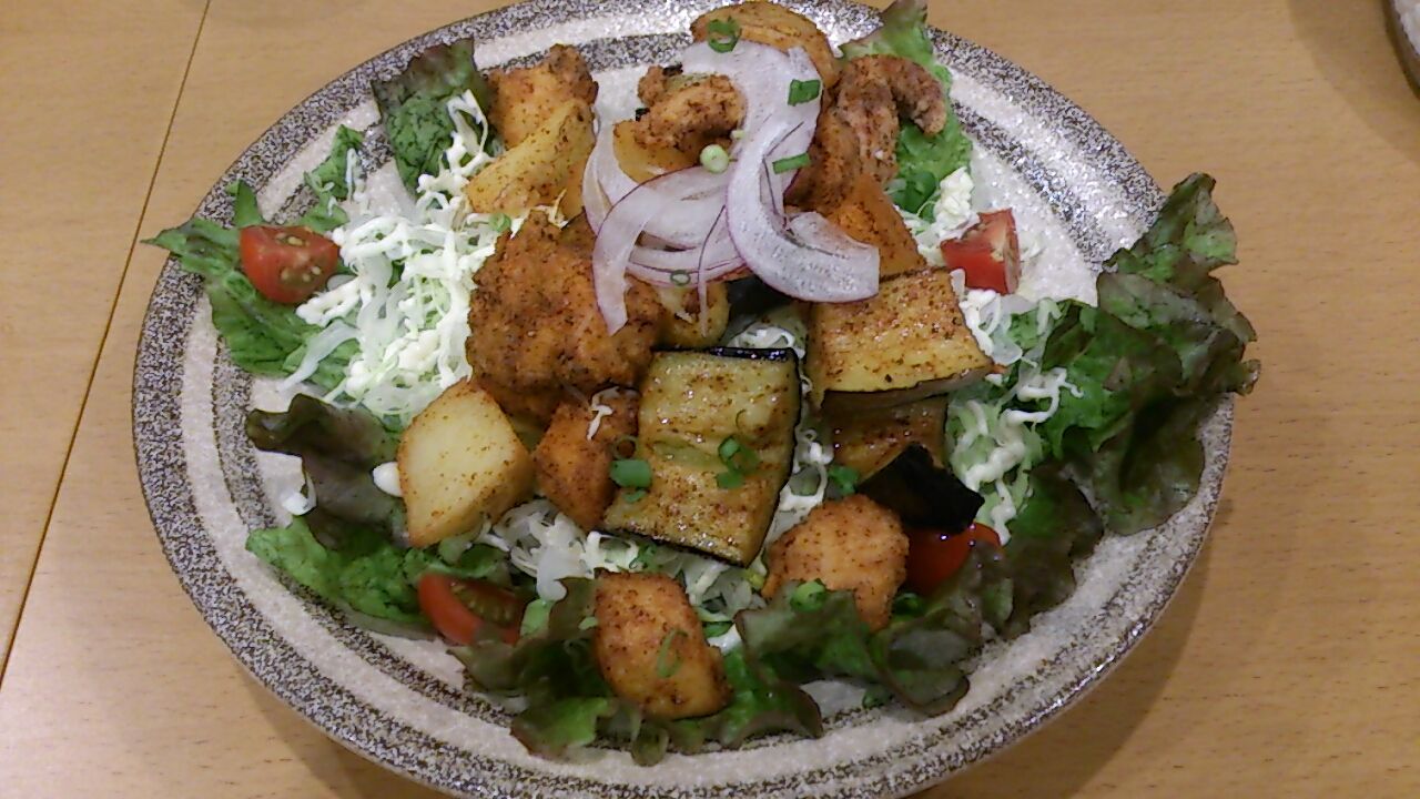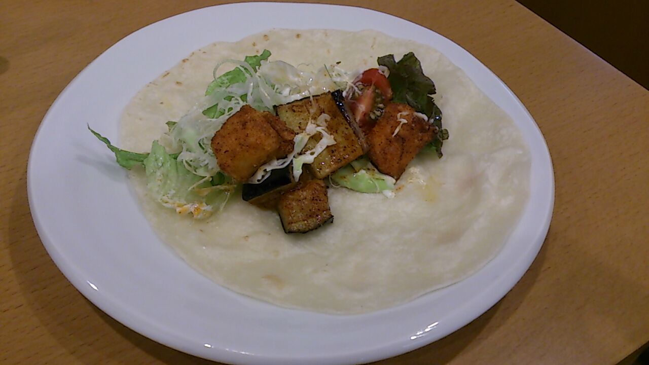 揚げ鶏 と ナス&ジャガイモ のトルティーヤ ~ケイジャンソース~ (900円)