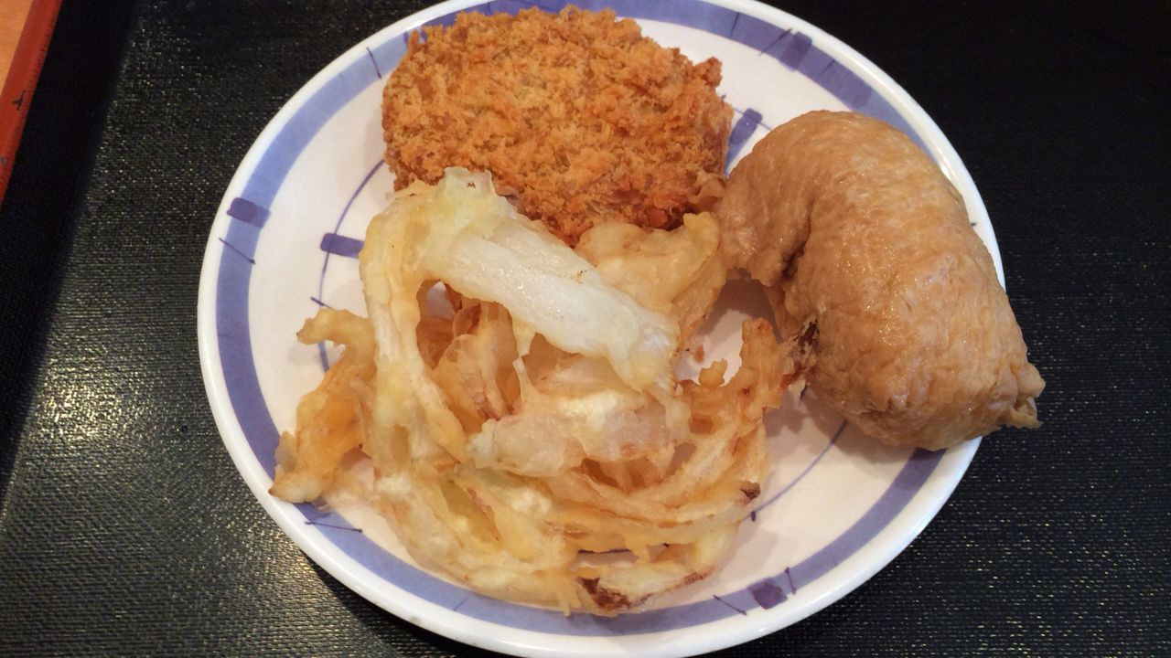 かき揚げ (100円) ・ コロッケ(100円) ・ いなり寿司 (90円)