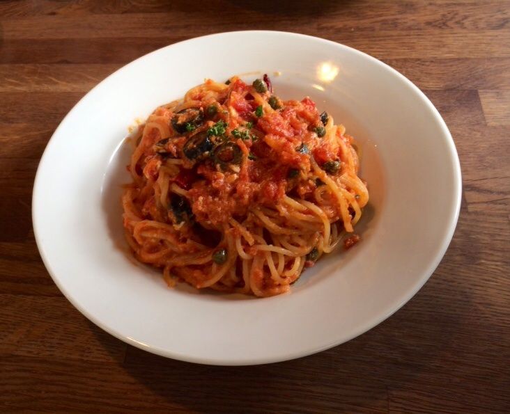 卵のプッタネスカ (トマトソースパスタ)