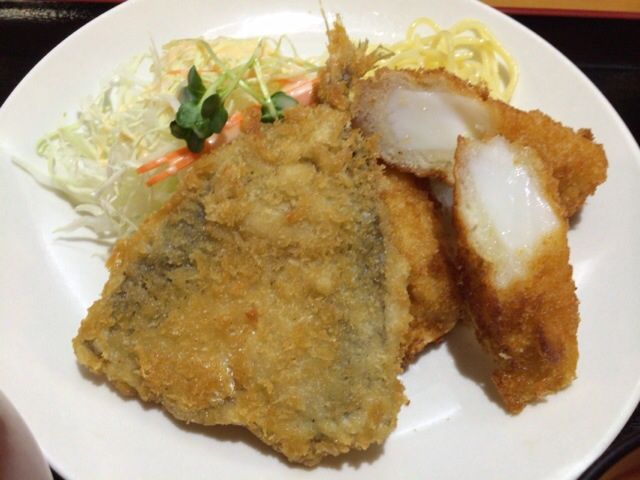 ミックスフライは、鯵とイカのフライです。