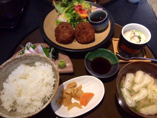 メインの他に、お刺身、茶碗蒸しも付いていて、色々楽しめますね