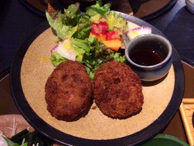 揚げたてのコロッケは、穴子と根菜!