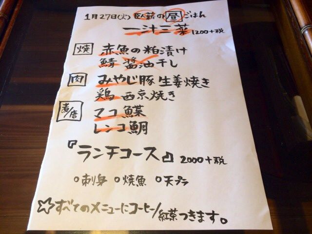 いつもランチタイムには、お店の外にも看板が出ているのですが、今日はアリマセン。