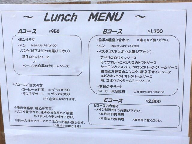 本日、お店の前を通りかかったところ、ランチメニューが変わっていました