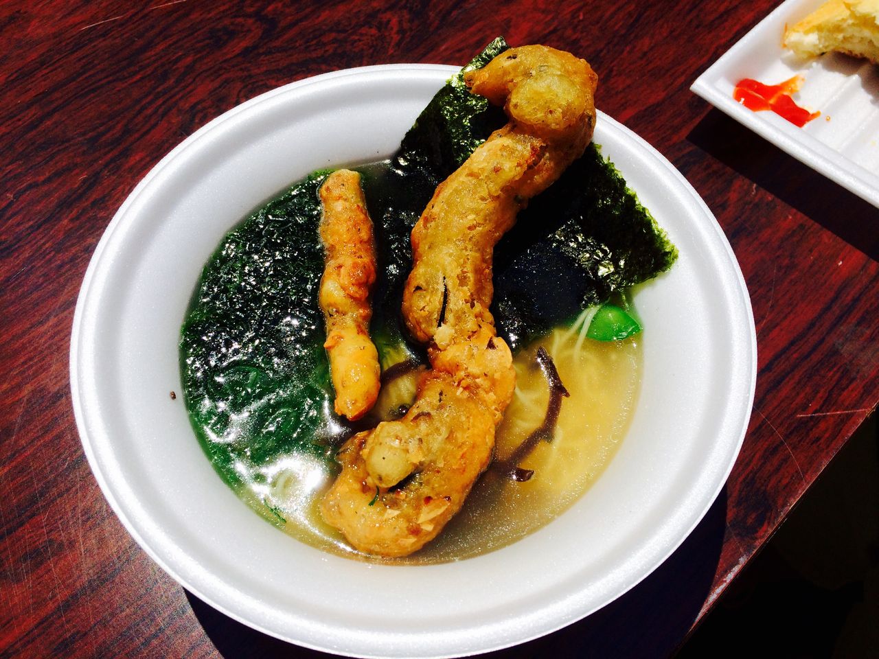 海苔 や さつま揚げ のようなものが、ドーン と乗っています