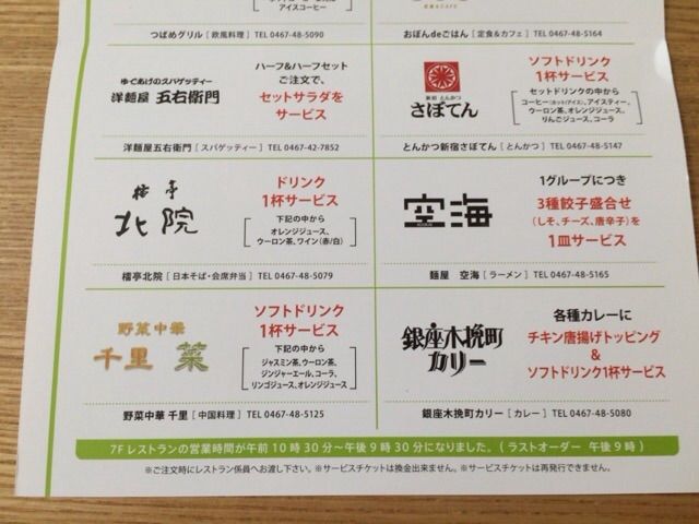 7Fにあるレストランで、お食事をすると、各店舗それぞれのサービスが受けられます!