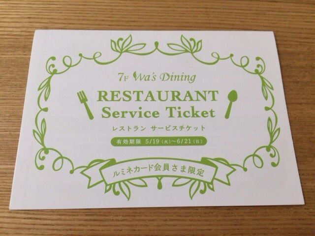 「7F Wa's Dining レストラン サービスチケット」 をもらいました!