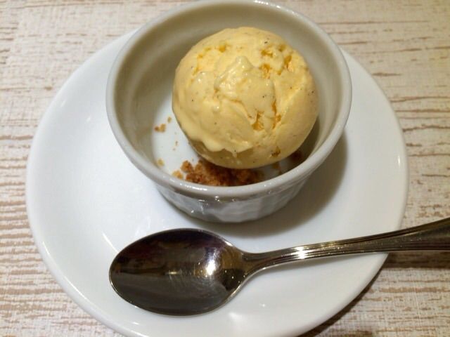 バニラアイスの上に、クッキーを砕いたようなものがかけてあり・・・