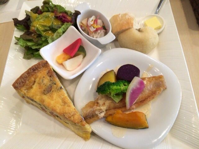 本日は、キッシュ & メインプレート と お魚料理を注文しました