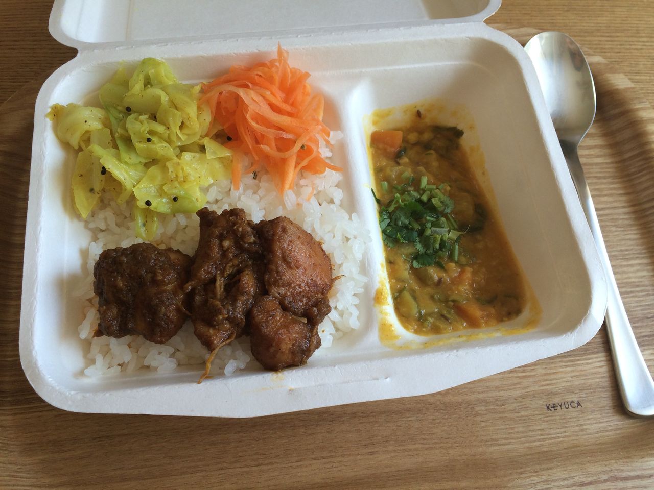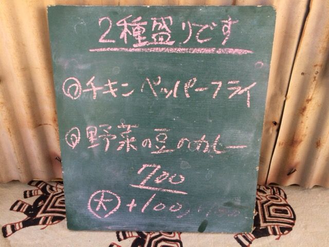 チキンペッパーフライ と 野菜の豆のカレー の2種盛です!