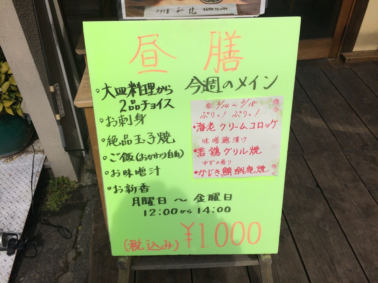 今週のランチメニューは、こちら