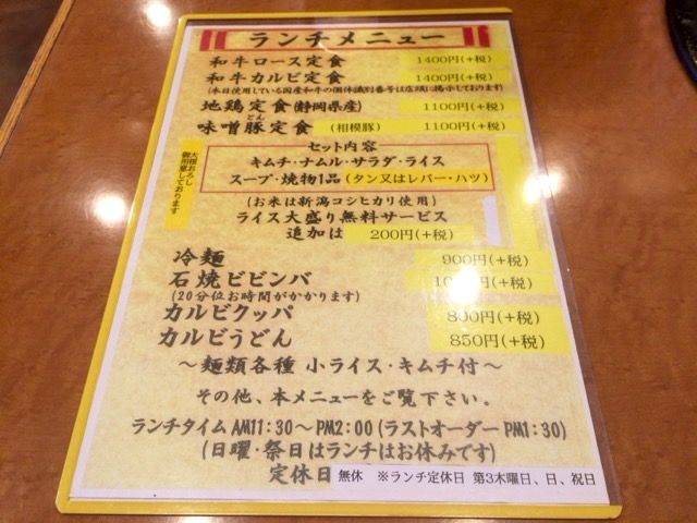 焼肉定食から、ご飯ものまで、充実ですね