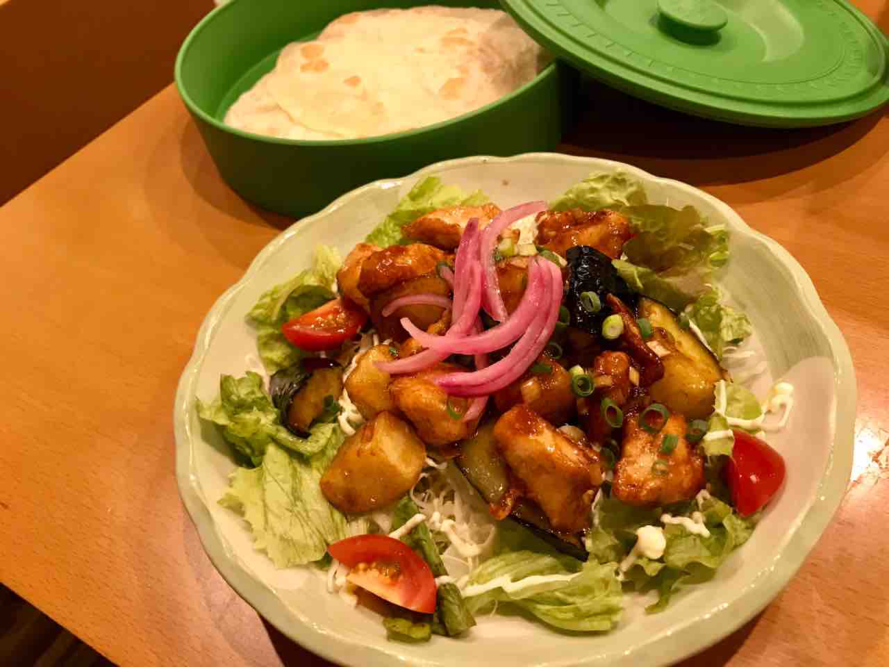 私の中での定番は、揚げ鶏と茄子&ジャガイモのトルティーヤ です♪
