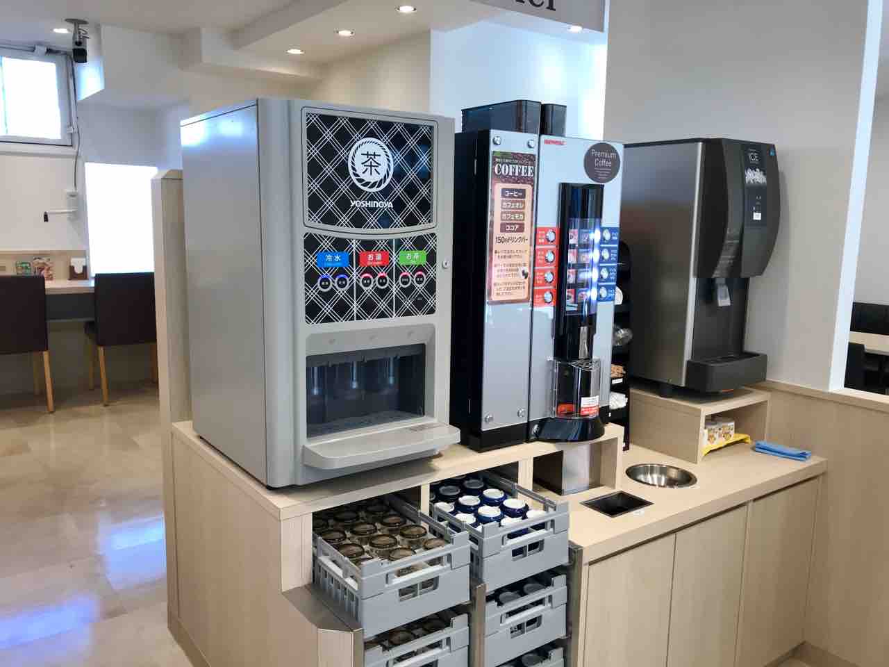 コーヒー・ココアが飲めるマシンもありますが、こちらは有料のドリンクバー(150円)となります。