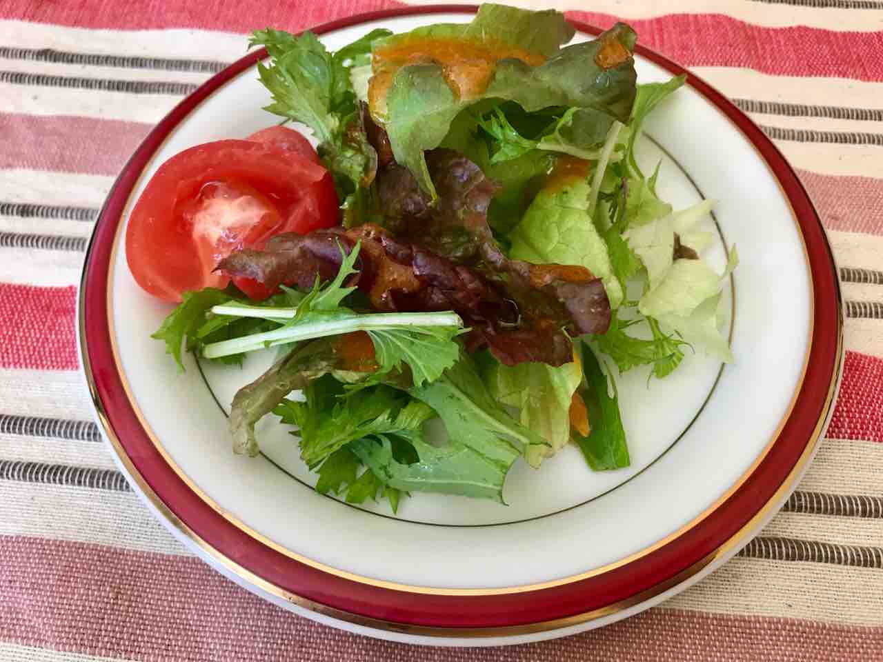 サラダは、シンプルだけどドレッシングも美味しいです。