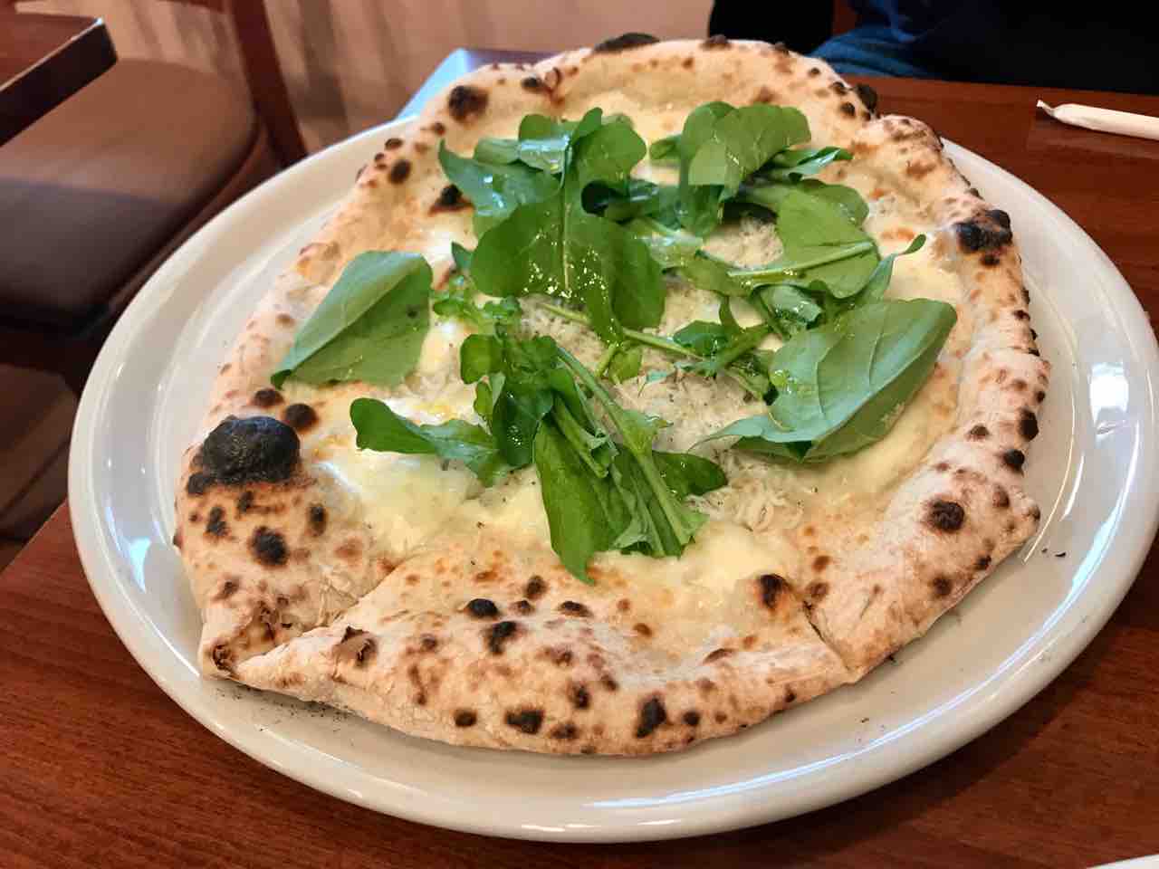 こちらは、トマトソースなしのピザで、しらすとルッコラ。