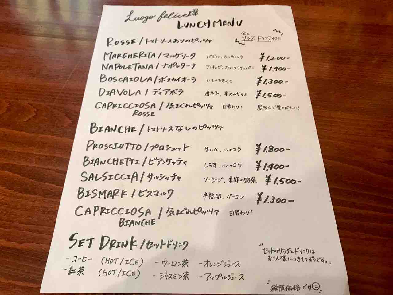ランチに行きましたが、メニューはピザのみ!