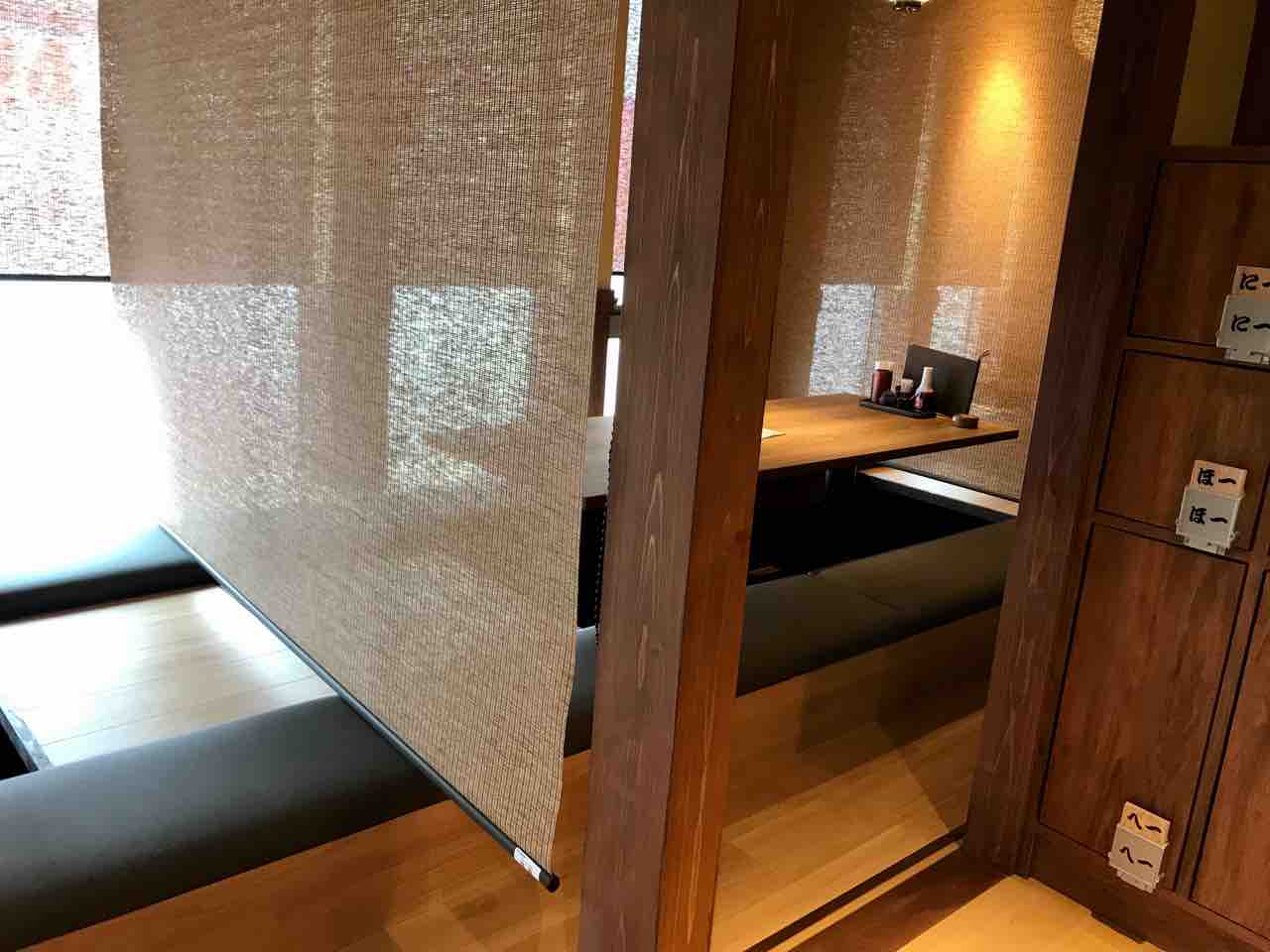 入ってすぐ、テーブル席とカウンター席が見えます。