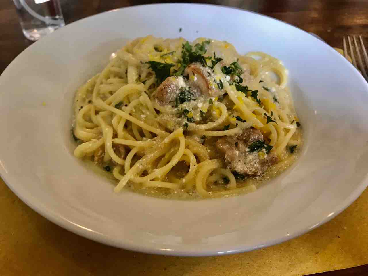 私は、自家製リコッタチーズと鶏モモ肉のレモンパスタ(1,200円)を頼みました。