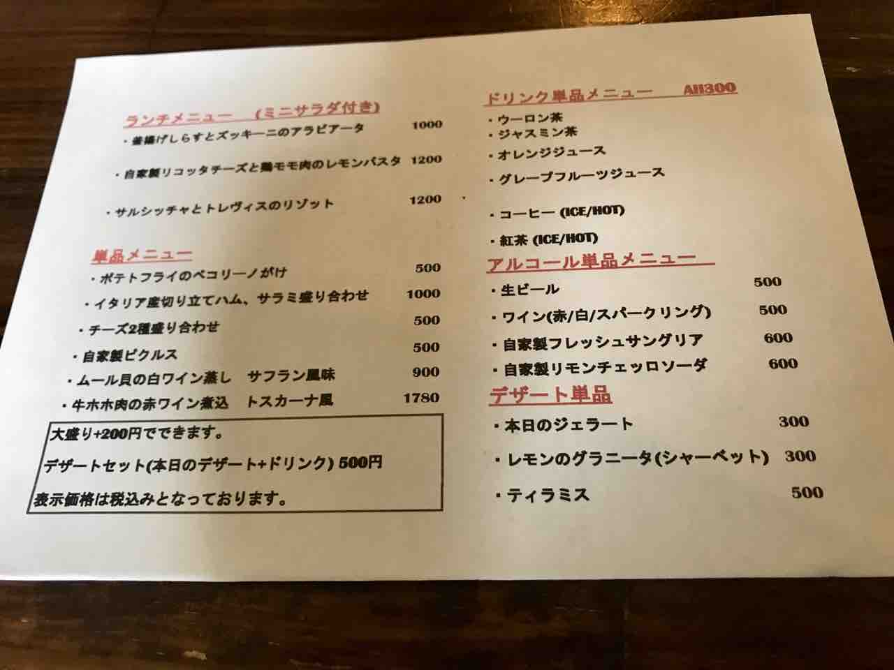 ランチメニューは、パスタ2種(アラビアータ・レモンパスタ)とリゾットでした。
