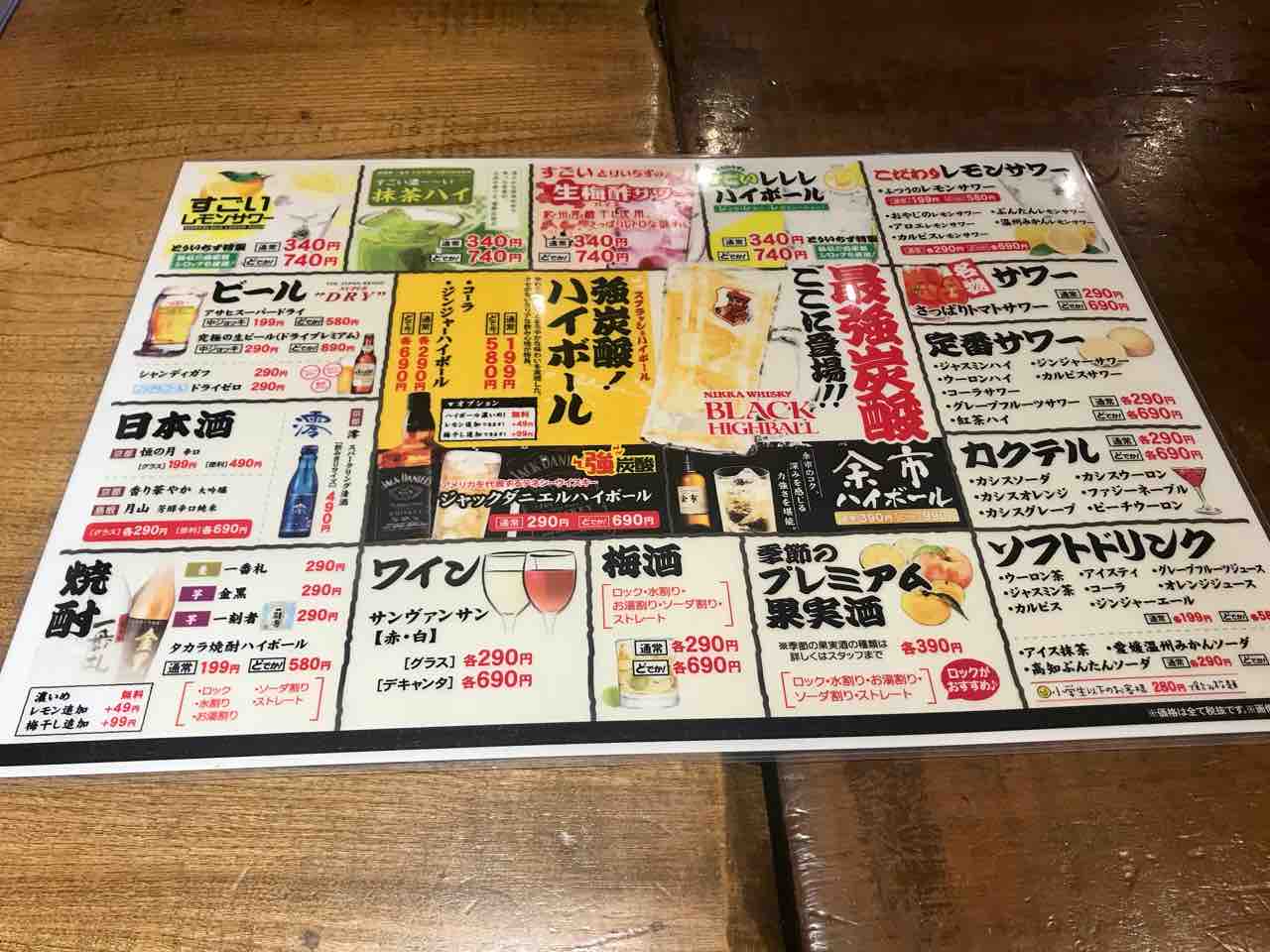 これは単品メニューとドリンクメニュー。