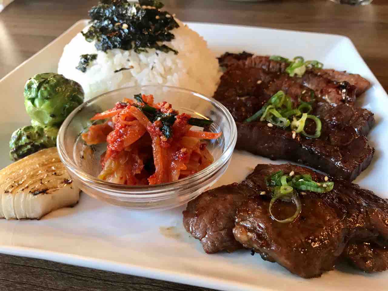 焼き野菜、ごはん、キムチも付いています。別にスープもありました。