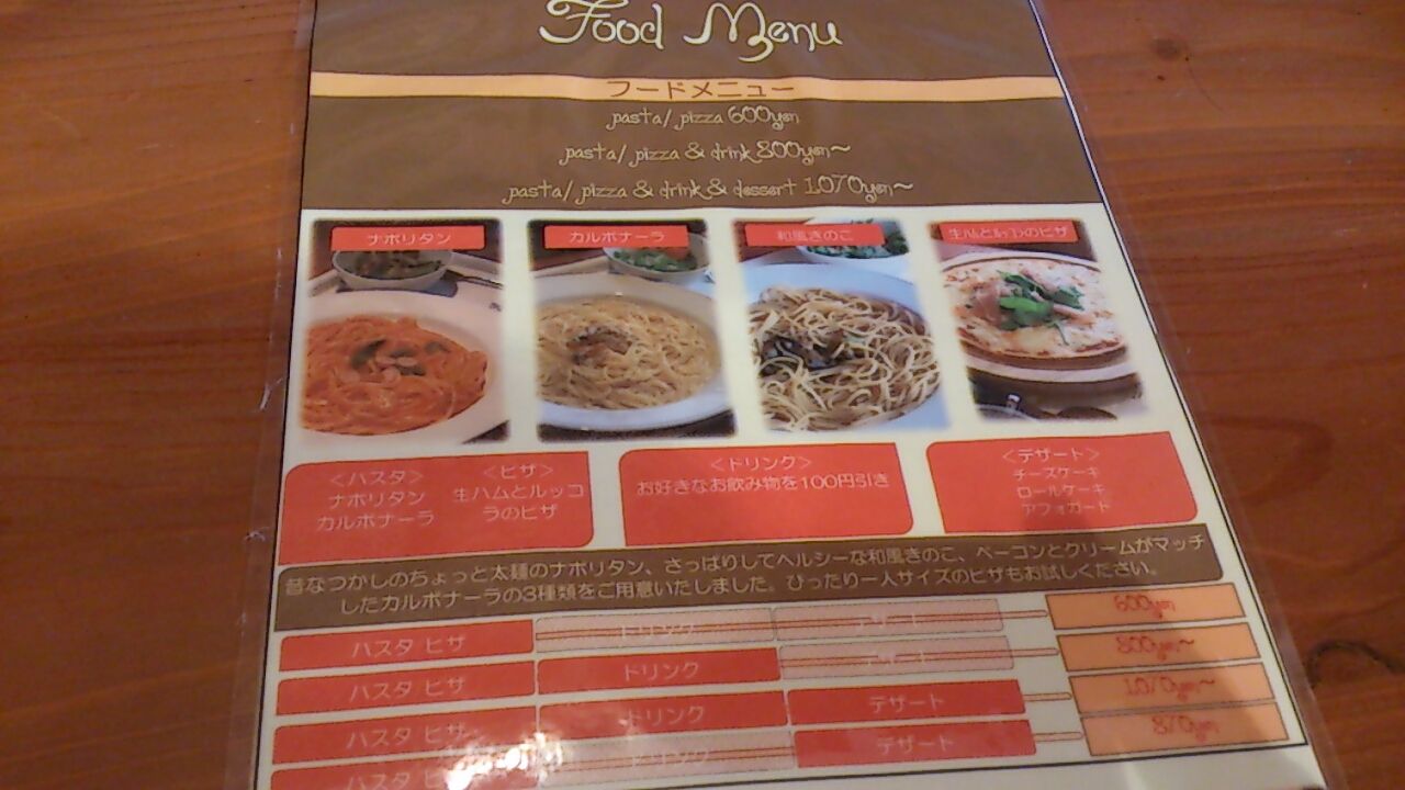 ランチメニューは、パスタ と ピザ。