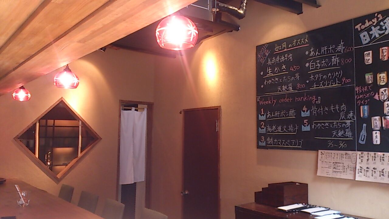 入ってみると、店内の1階は L字型のカウンター席 と テーブル席 1つがありました。